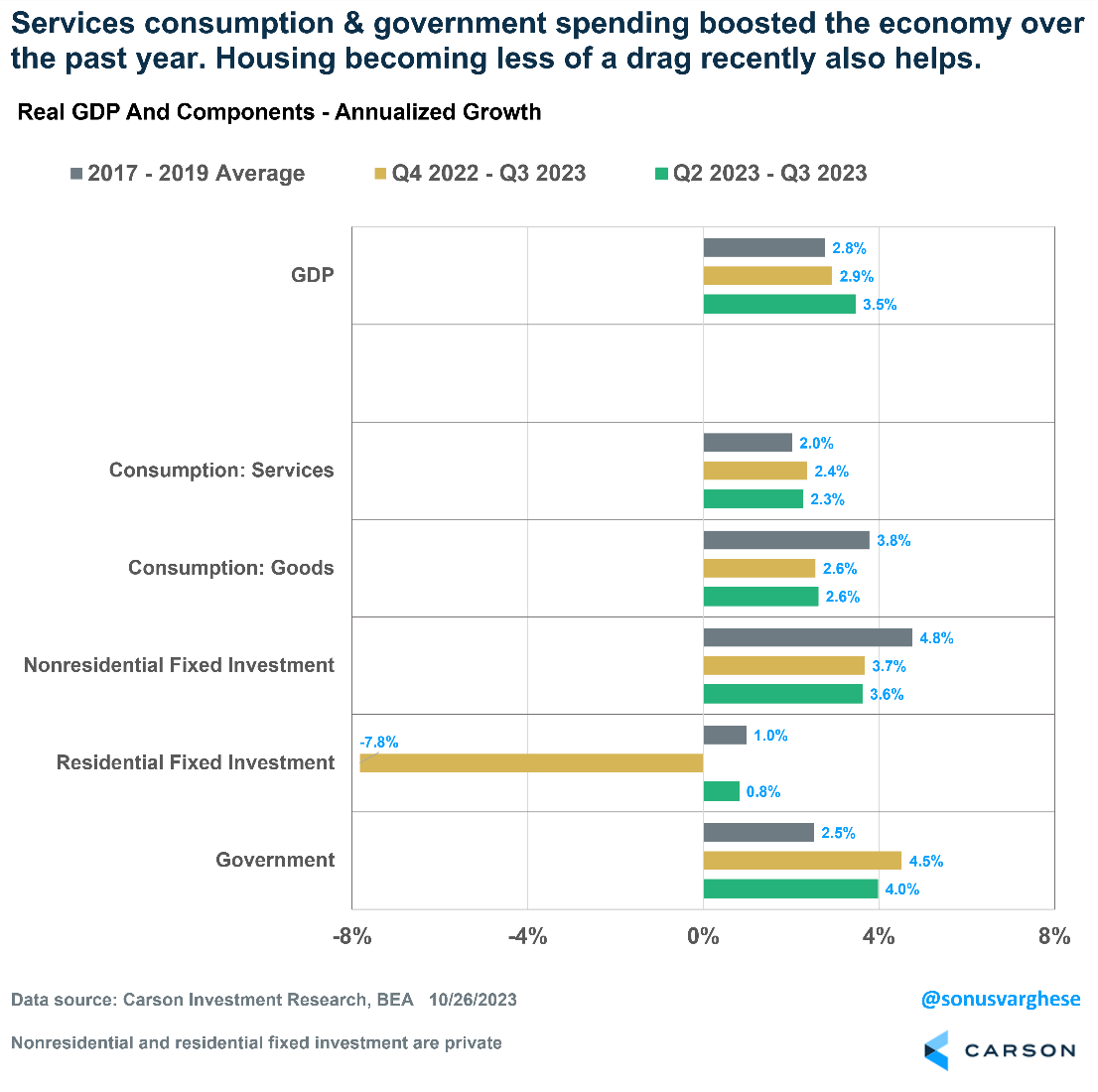 - Consumer services and government spending are likely to remain strong contributors to growth in the final quarter of the year.