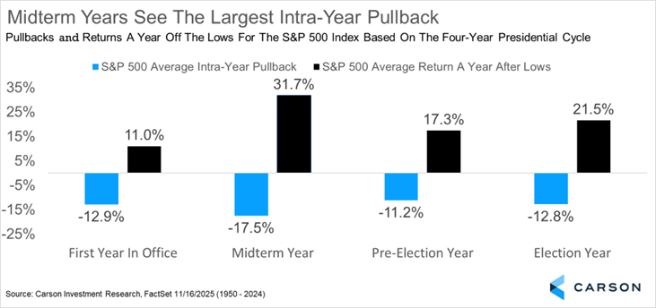 Get ready to hear this a lot, but historically, midterm years are indeed the weakest of the four-year presidential cycle. Think back to 2018 and 2022 — both saw vicious stock declines and negative returns for the year.